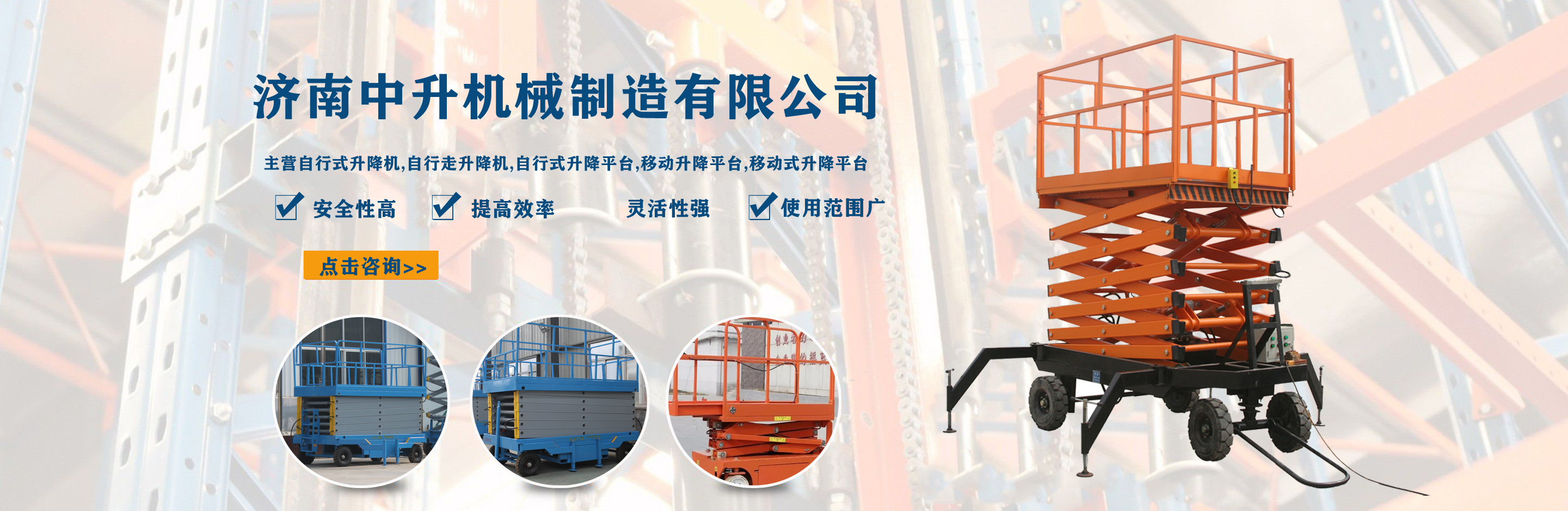 濟(jì)南中升機(jī)械制造有限公司主營(yíng)自行式升降機(jī),自行走升降機(jī),自行式升降平臺(tái),移動(dòng)升降平臺(tái),移動(dòng)式升降平臺(tái)等產(chǎn)品,產(chǎn)品廣泛用于廠房維護(hù)、工業(yè)安裝、設(shè)備檢修、物業(yè)管理、倉(cāng)庫(kù)、航空、機(jī)場(chǎng)、港口、車站、加油站、體育場(chǎng)、展覽館等多種行業(yè)和場(chǎng)所, 公司設(shè)備精良、工藝合理、檢測(cè)手段齊全,技術(shù)力量充足,公司創(chuàng)立伊始即本著“專注、專心”的經(jīng)營(yíng)理念,依托技術(shù)團(tuán)隊(duì)優(yōu)勢(shì)和設(shè)備硬件保障,全力打造良心的升降平臺(tái)企業(yè)。 我公司始終以“品質(zhì)為本,服務(wù)至上”作為企業(yè)宗旨。只要你訂購(gòu)了我公司的產(chǎn)品,無論你身處何方,我們都會(huì)及時(shí)派出技術(shù)人員為你服務(wù)!...